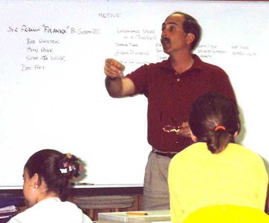 If students wrote news stories with "Floyd," they will write feature stories with "George," and when Thomas Jefferson visits, they will write columns or editorials, getting used to writing for a purpose by looking at information in different ways.